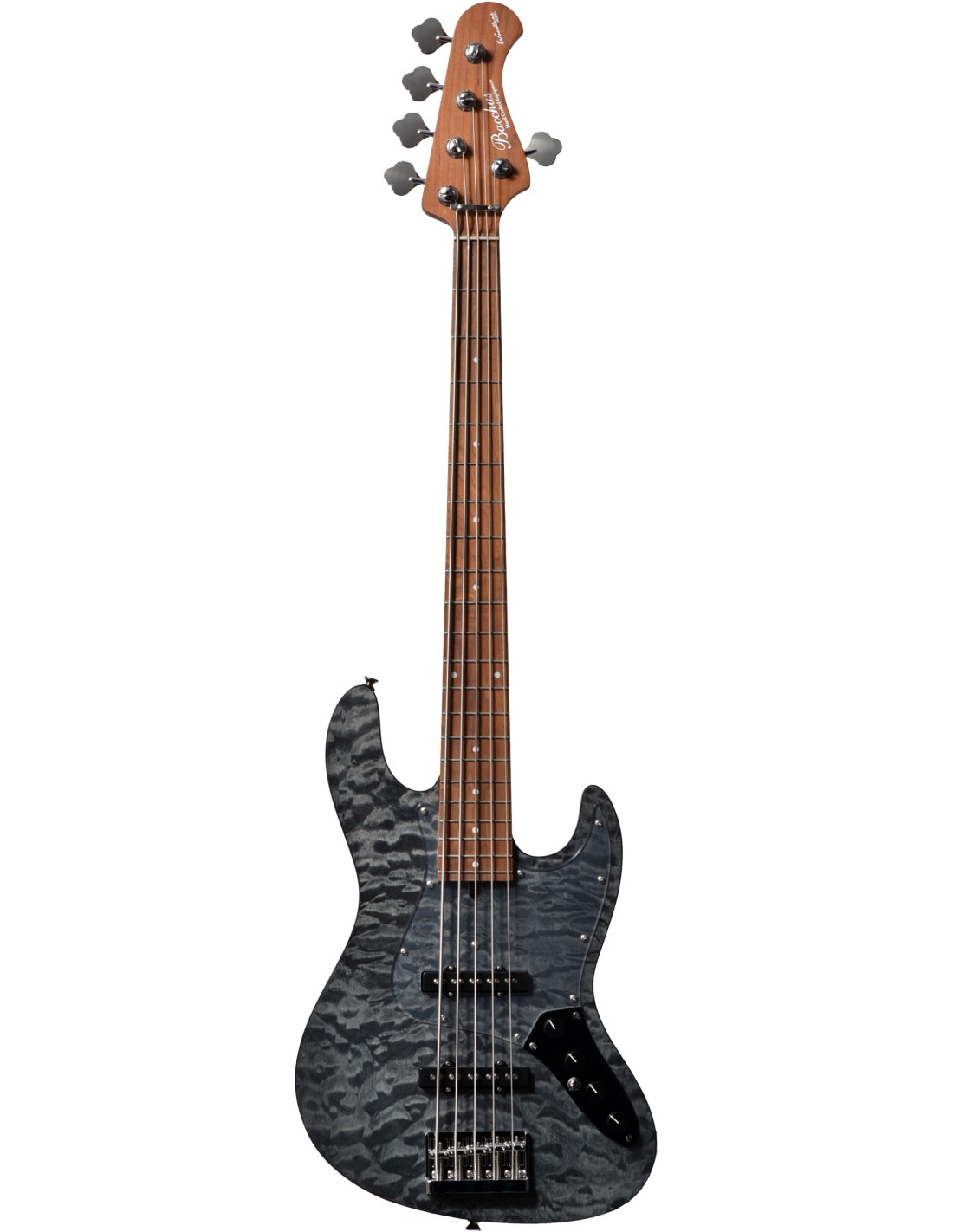 La Bacchus WL5-QM-AC RSM/M est une basse ‡ 5 cordes qui prÈsente un design ÈlÈgant. Gr‚ce ‡ sa table en Èrable ondÈ, son manche en Èrable torrÈfiÈ ainsi que son corps en Noyer, cette basse permet une jouabilitÈ prÈcise et fiable. Son EQ ‡ 2 bandes ainsi q