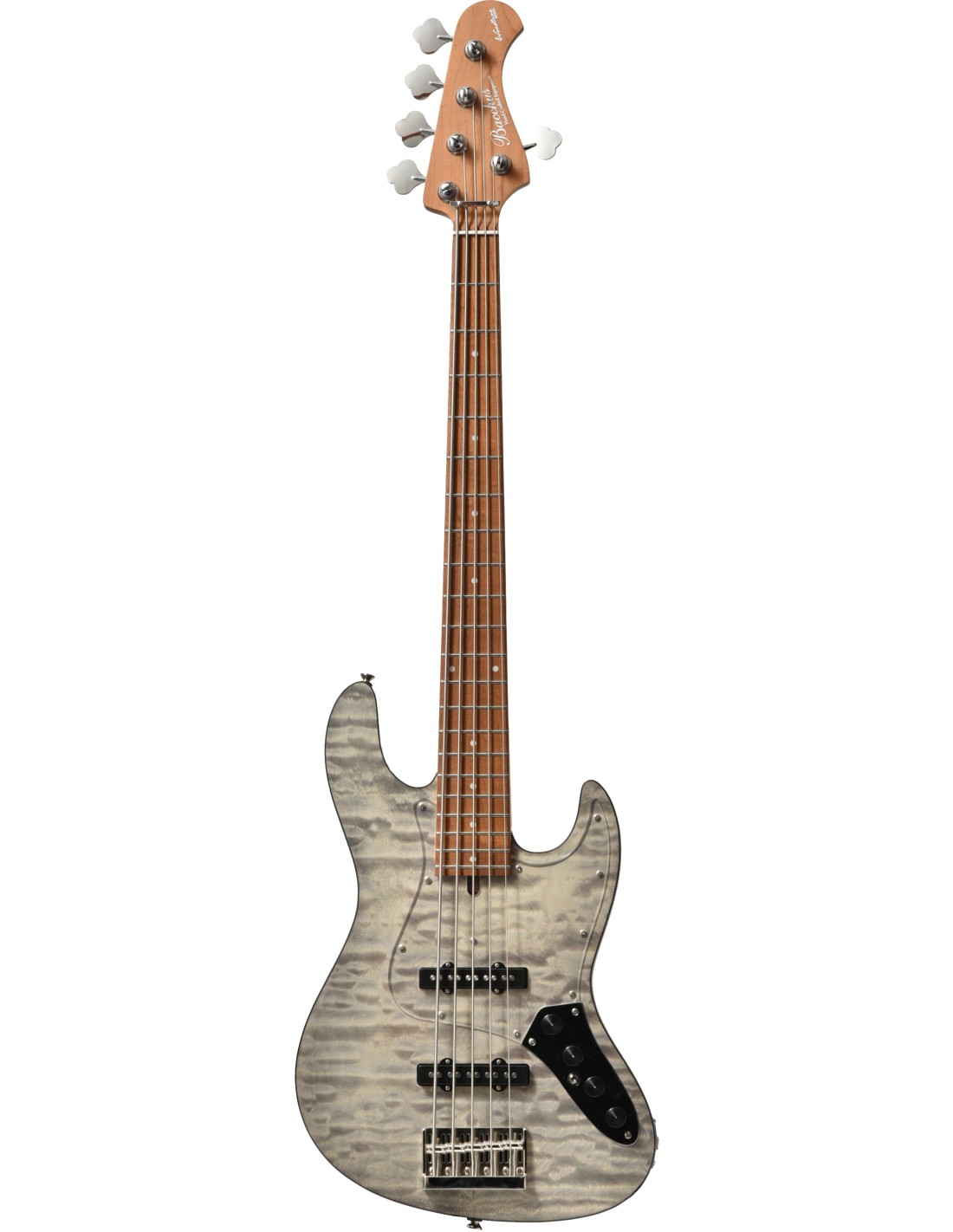 La Bacchus WL5-QM-AC RSM/M est une basse ‡ 5 cordes qui prÈsente un design ÈlÈgant. Gr‚ce ‡ sa table en Èrable ondÈ, son manche en Èrable torrÈfiÈ ainsi que son corps en Noyer, cette basse permet une jouabilitÈ prÈcise et fiable. Son EQ ‡ 2 bandes ainsi q