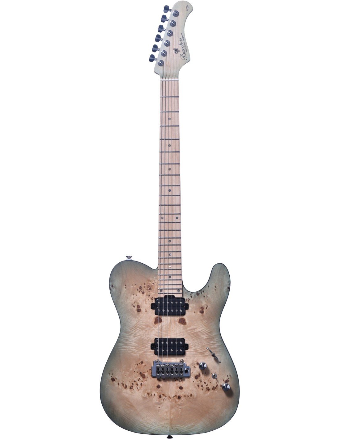 La Bacchus TACTICS24-BP/M prÈsente avant tout une belle esthÈtique gr‚ce ‡ ses deux finitions disponibles : Keiryu Blue et Someiyoshino Pink. En effet, avec sa table en loupe de peuplier, son manche en Èrable et son corps en noyer, cette guitare offrent u