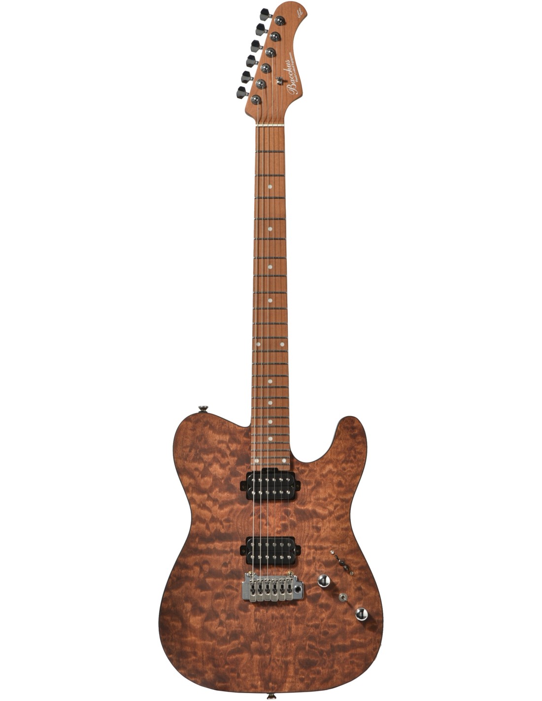 La Bacchus TACTICS24-QM RSM/M offre aux joueurs un confort et une polyvalence gr‚ce ‡ ses 24 frettes en acier inoxydable, son vibrato Wilkinson ou bien son humbucker avec coil tap. Avec son manche en Èrable et son corps en Èrable matelassÈ et noyer, la TA